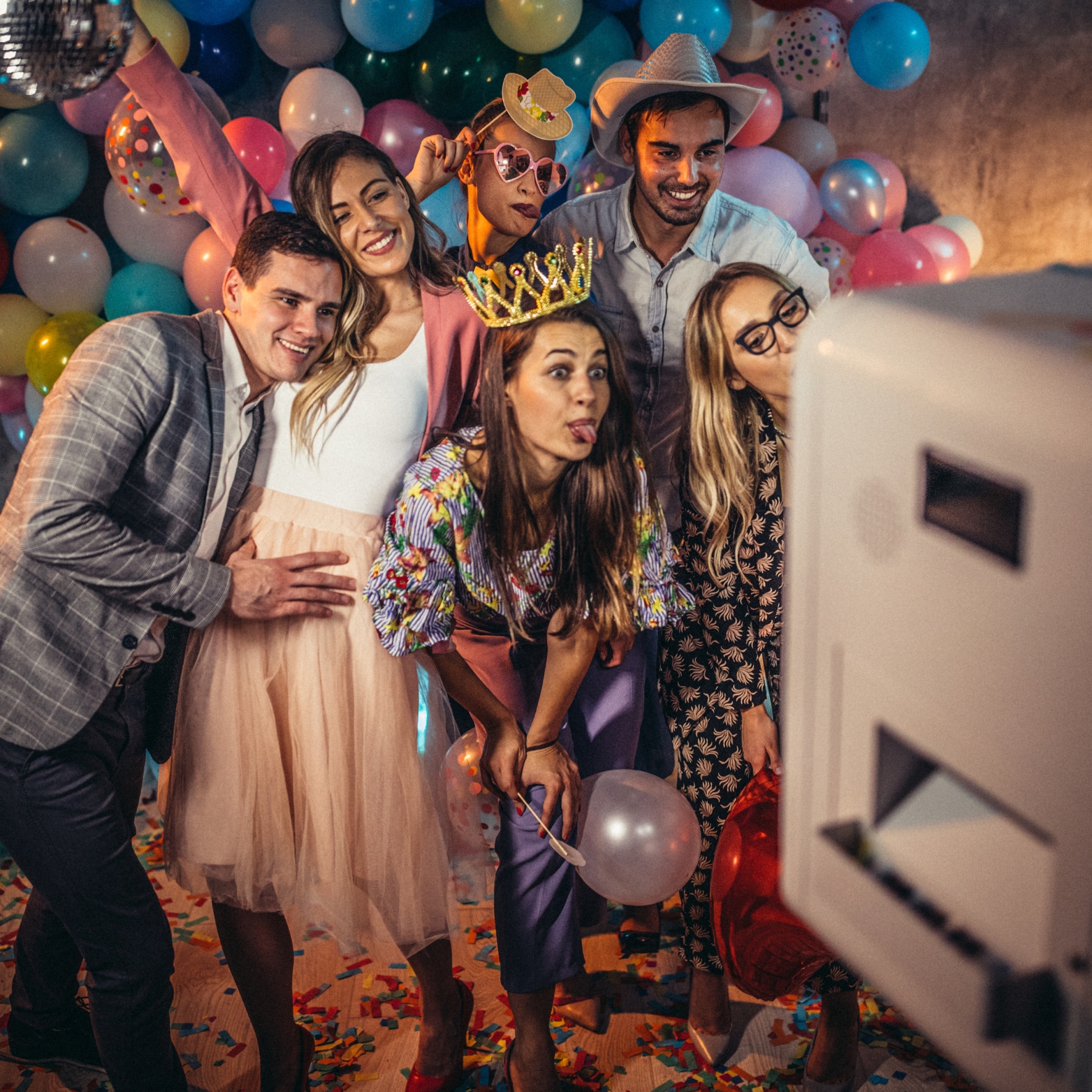 Nie przyjedziemy do Państwa z maszyną i tłem. Elegancki design naszej fotokabiny pozwala się w niej stylowymi przysłonić kotarami i robić zdjęcia bez publiki. Nie przeszkadza to tym samym w wykonywaniu zdjęć grupowych gdyż nasza budka mieści aż do ośmiu osób!